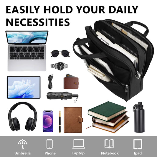 Laptop Bag for 15.6 Inch, Computer Bag Laptop Briefcase Men Women, Laptop Shoulder Bag, Work Messenger Bag Business Travel Office, Black